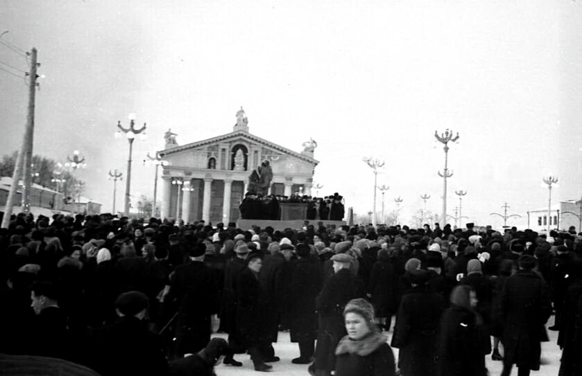 4 ноября 1956 г. Нижний Тагил. Воскресенье.В 12 часов дня, на Театральной площади под звуки Государственного гимна СССР был открыт памятник изобретателям первого в России паровоза отцу и сыну Ефиму Алексеевичу и Мирону Ефимовичу Черепановым. Митинг открывал секретарь Нижне-Тагильского горкома КПСС тов. Довгопол. Выступили директор завода им. Куйбышева, преподаватель горно-металлургического техникума тов. Шилейко, секретарь горкома ВЛКСМ тов. Пылаев, Читать далее